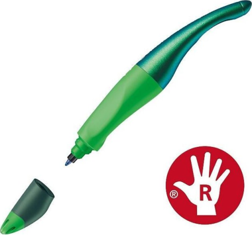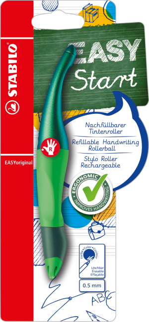 Ergonomický bombičkový roller Stabilo EASYoriginal pero pre pravákov umožňuje školákom písanie bez škrabania na papieri.