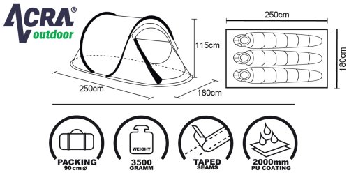 Vezmite samostavací stan Acra BROTHER ST01 a vydajte sa kempovať. Pohodlne sa v ňom vyspia až 3 osoby . Ľahko ho pribalíte na cestu, pretože je skladný . Ak plánujete ísť autom, nezaberie príliš veľa miesta vo vašom kufri. Najväčšou výhodou stanu je však to, že sa v podstate postaví úplne sám . Stačí, aby ste vybrali stan z obalu. Uľahčí vám prácu a vy potom len upevníte kolíky k zemi a dopnete plášť stanu kotviacimi šnúrami dookola. Počas chvíľky máte svoje dočasné útočisko postavené. Návod nájdete v balení.