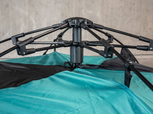 Stan Acra jednoducho vyberiete z obalu a uchopíte ho za vrchný spojovací diel. Pomocou pružných sklolaminátových prútov , ktoré sú spojené do jedného celku, sa sám zostaví. Nohy napnete pomocou kolíkov , ukotvíte upínacie šnúry a rovno stan využijete na odpočinok.