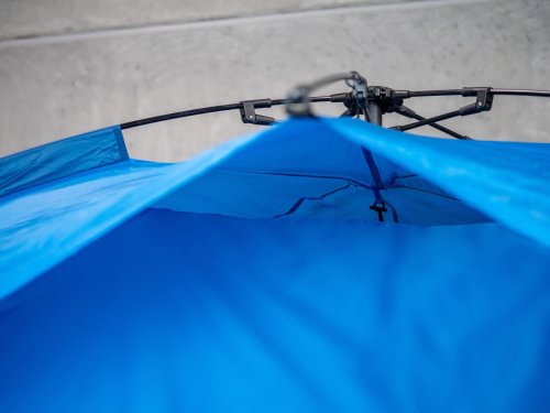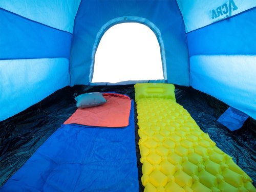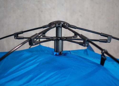 Stan Acra jednoducho vyberiete z obalu a uchopíte ho za vrchný spojovací diel. Pomocou pružných sklolaminátových prútov , ktoré sú spojené do jedného celku, sa sám zostaví. Vznikne tak otvorený prístrešok. Spálňu potom zavesíte na konštrukciu stanu. Nohy napnete pomocou kolíkov , ukotvíte upínacie šnúry a rovno stan využijete na odpočinok.