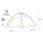 V jednoplášťovom stane Cattara BUDVA s celkovými rozmermi 280 x 140 x 220 cm sa vyspia až 4 osoby . Hlavný vstup je opatrený obojstranným zipsom pre ľahké otváranie zvonku aj zvnútra. Po otvorení hlavného vstupu narazíte na sieťovanú priedušnú plentu (moskytier) , ktorá zamedzí vstupu nepozvaným hosťom, ako sú komáre, muchy a iný hmyz.