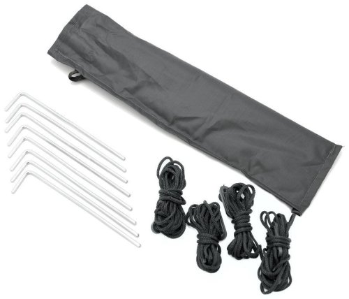 Nosné tyče sú vyrobené z odolných sklených vlákien s výbornou ohybnosťou a dlhou životnosťou. Príslušenstvo samozrejme zahŕňa aj kolíky na ukotvenie základne a napínacích nastaviteľných povrázkov .