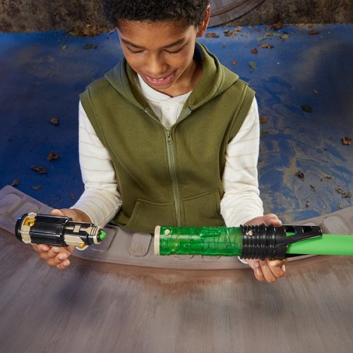 Svetelný meč s úplne novými priehľadnými prvkami Krištáľu Kyber. V balení sú 4 diely inšpirované postavou, ktoré je možné kombinovať s ostatnými mečmi z radu Lighsaber Forge. Na vysunutie čepele stačí urobiť rázny pohyb!