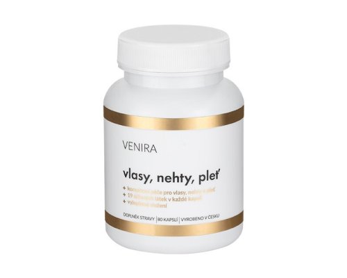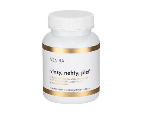 Vitamíny na podporu rastu, objemu a kvality vlasov, silné a nelámajúce sa nechty a nádhernú pleť - to sú Venira kapsule. Úspech týchto čisto prírodných kapsúl stojí na mnohoročnom vývoji a kvalite jednotlivých zložiek. Tento doplnok stravy odporúčame každému, kto chce sústavne pracovať na zlepšení kvality a vzhľadu svojich vlasov, nechtov a pokožky a zároveň každému, kto hľadá účinné riešenie pre svoje lámavé nechty, slabé a vypadávajúce vlasy a drobné nedokonalosti pleti. Venira kapsule pre vlasy, nechty a pleť sú vhodné pre ženy aj mužov. Vzhľadom na to, že kapsule sú prírodné a zdravotne nezávadné, môžu ich užívať aj ženy v období tehotenstva a dojčenia, avšak až po predchádzajúcej konzultácii s ošetrujúcim lekárom. Aké problémy riešia: