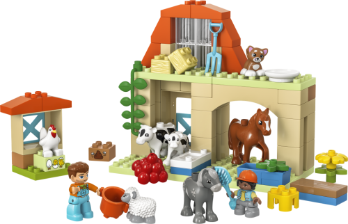 Táto hračka pre batoľatá s radom funkcií v deťoch prebudí malých opatrovateľov. Stavebnice očaria celú rodinu a dospelí svojim ratolestiam predvedú, ako sa starať o zvieratá a ako ich kŕmiť. Figúrka farmára ukáže postave dieťaťa, ako umyť jablká, ktorými nakŕmi kravičku a jej teliatko. V kurníku sa sliepočka stará o svoje kuriatka. Deti sa vydajú na prechádzku s figúrkou koníka a nakŕmia ju senom.
