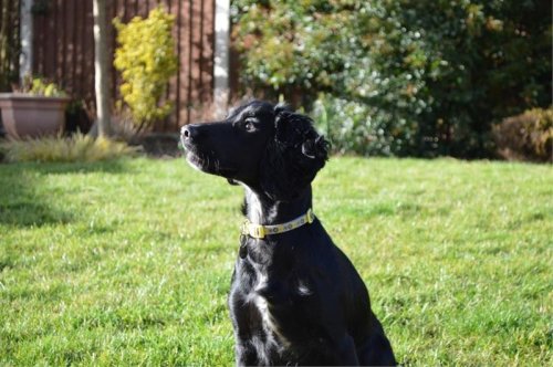 Štartovacia sada na venčenie šteniat. Rozmery (cca): obojok 22,5–36 cm vodítko 103 cm Farba: žltá