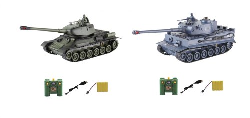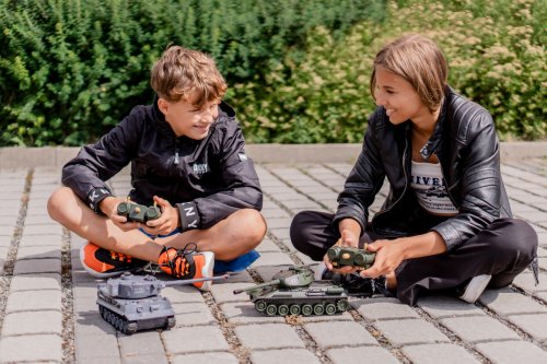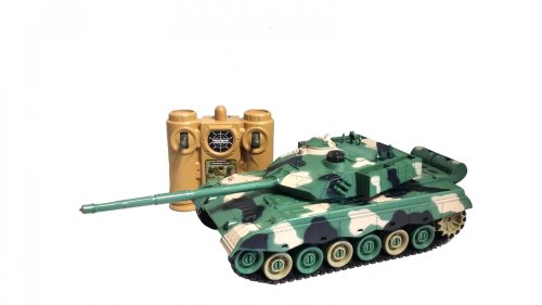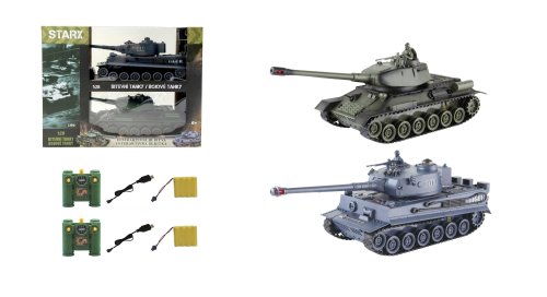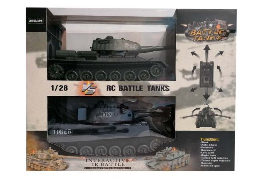 Tanky s diaľkovým ovládačom, infrared, 2,4 GHz. Tank aktivujete tlačidlom ON na jeho spodnej strane. Tlačidlom FIRE na diaľkovom ovládači spustíte zvukové a svetelné efekty výstrelu. Tan jazdí všetkými smermi, pohyb sa riadi pohybom páčok na diaľkovom ovládači . Pohyb tanku vpred posun oboch páčok vpred na ovládači, jazda vzad - posun oboch páčok dozadu. Otáčanie tanku posun jednej páčky dopredu alebo dozadu. Otáčanie delá tanku tlačidla vo vrchnej časti ovládača vľavo alebo vpravo. Prevádzka tanku na batériový pack (súčasť balenia, nabíjanie cez nabíjačku. Diaľkový ovládač na 2x1,5V batérie AA - nie sú súčasťou balenia. V prípade zakúpenia 2.tanku si môžete zahrať tankovú bitku. Každý hráč má 3 životy - svetlá na zadnej časti tanku. Po každom zásahu jedno svetlo zhasne. Prehráva ten, komu sa najskôr rozblikajú svetlá na zadnej časti tanku.