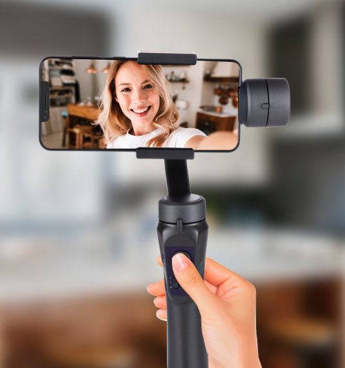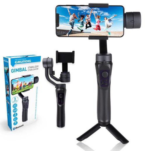 Nenahraditeľné zariadenie pre športové akčné filmy, legrační húštiny, záznamy na YouTube, delay filmy, časozber, panoramatické fotografie, prechody a ďalšie dynamické záznamy. Tento kardanový stabilizátor Grundig udržuje váš telefón v správnej polohe bez ohľadu na to, aké pohyby robíte. Stabilizátor je možné nabíjať priloženým Micro USB káblom . Grip pasuje na smartfóny so šírkou 58 až 100 milimetrov. Súprava obsahuje mini statív, takže si môžete sami filtrovať a zvečniť všetky druhy scén. Smartphone je možné používať vertikálne aj horizontálne a je možné ho otáčať o 360 stupňov. Veľký joystick uprostred znamená, že gimbal je možné jednoducho a rýchlo ovládať jednou rukou. Automaticky sa nastavuje hore/dole/vpravo/vpravo. Stabilizátor má 3 úrovne nastavenia: pevný (zamknutý), polovičný pohyb (polovičné nasledovanie) alebo plný pohyb (úplný pohyb). Pripojíte ho k bluetooth, takže môžete ovládať vytváranie filmov a fotografií. vľavo, vpravo- vertikálne Zdvíhanie pomocou gest rúk- One- návrat kľúča do východiskovej polohy-Režim scény: blokáda, semi -sekvencia- Funkcia Bluetooth- Funkcia nabíjania USB