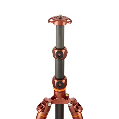 Tvarovaná doska Tri-Mount obsahuje 3 duté ostrohy pre pripojenie popruhu, karabíny či nástroja 3LT Toolz, 6 otvorov s 1/4″ skrutkovým závitom pre širokú škálu CSC/DSLR fotoaparátov a kamier a 1 otvorom so závitom 3/8″ pre uchytenie mikrofónu is protiveterným návlekom. Pevná a úplne vyvážená konštrukcia z 8 vrstiev uhlíkových vlákien az leteckej horčíkovej zliatiny zaistí statívu potrebnú stabilitu za každej situácie. Použité materiály dodávajú tripodu pôsobivý pomer zaťaženia k hmotnosti 24:1 vďaka jeho neuveriteľnej nosnosti 30 kg s nasadenou hlavou, takže sa hodí aj pre výrazne ťažšie DSLR fotoaparáty.