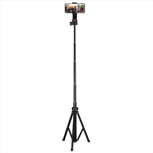 Teleskopický mechanizmus umožňuje plynulé nastavenie výšky od 41,5 cm v zloženom stave až po 150 cm v plnej výške. Hliníková konštrukcia zaisťuje odolnosť pri hmotnosti 1850 g a podporuje zaťaženie až 1000 g . Krížové vzpery s gumovými nôžkami poskytujú pevný úchop na hladkých, klzkých aj nerovných povrchoch. Otočný držiak na smartfón s extrémnou flexibilitou pre šírky 5,8 až 8,8 cm zaisťuje ľahký prechod medzi portrétnym a krajinným formátom. Svorka s pružinovým držiakom a gumovou ochranou chráni povrch zariadenia pred poškriabaním. V zloženom stave je možné statív použiť ako selfie monopod pre spontánne snímky.