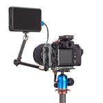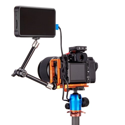 Pripojte monitor alebo napríklad mikrofón pomocou dvojitého upevňovacieho bodu 1/4"-20 a 3/8"-16 , ktorý umožní spojenie vášho príslušenstva s kamerou. K bočným portom sa dostanete otvorenou stranou držiaka . Zároveň budete mať ľahký prístup k batérii ak pamäťovej karte. Perfektne tvarované Arca-Swiss doštičky sa bezpečne upevnia k hlave statívu a držia na mieste. Na statíve nájdete aj drážku na pripevnenie popruhu alebo kotvy na praktické prenášanie.