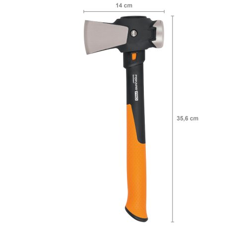 Sekera je ideálna na štiepanie malých polien a podpaľovačov, zatiaľ čo hnaciu stranu je možné použiť ako úderovú plochu alebo na zatĺkanie kolov. Prenáša o 50% menej nárazov a vibrácií ako kladivá s drevenou rukoväťou, čím znižuje záťaž vášho tela. Kovaná, tepelne spracovaná oceľová hlava je opatrená nehrdzavejúcou povrchovou úpravou. Na hnaciu plochu je možné pri štiepaní udrieť iným nástrojom, ktorý pomáha vytlačiť klin. Tvarovaná rukoväť SoftGrip ponúka prirodzené držanie a je opatrená vrúbkovaním, vďaka ktorému nástroj pevne drží v ruke. Dĺžka 36 cm, hmotnosť: 1,2 kg.