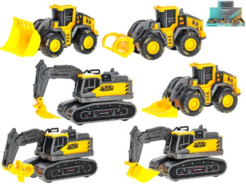 Stavebné vozidlá žltá 11,5 cm na zotrvačník - mix farieb (bager (kolesový, pásový), zbíjačka (kolesová, pásová))