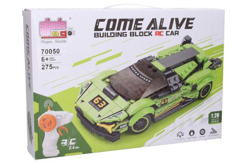 Stavebnica Auto zelené RC na diaľkové ovládanie. 275 dielikov. Rozmery 17,2x7,2x4,5 cm. Pištoľový ovládač. Frekvencia 2.4GHz. Batériový pack 3.7V 350mAh Li-ion do auta súčasťou, 2xAA do ovládača nie sú súčasťou. USB kábel súčasťou. Prepínač ON/OFF na spodnej strane auta a na bočnej strane ovládača. Obrázkový návod bez textu a nálepky súčastí.