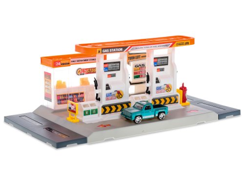 Stavebnica benzínová stanica 34x17 cm 24 ks s autom 7 cm kov voľný chod a doplnky