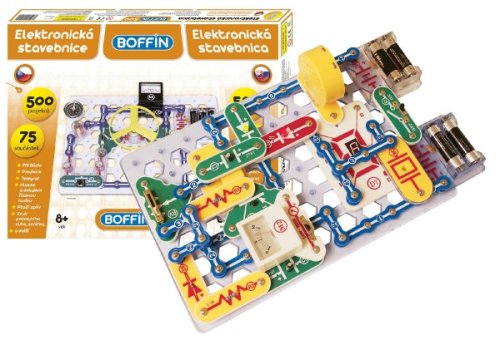 Boffin 500 je vynikajúca elektronická stavebnica, ktorá mladým technikom umožňuje zostaviť podľa zrozumiteľného obrázkového návodu najmenej 500 jednoduchých elektronických prístrojov a zaujímavých hračiek, spoľahlivo fungujúcich. Vložiť batérie 4xAA. Vhodné od 8 rokov.