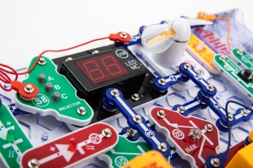 Elektronická stavebnica Boffin II. Stavebnica je zameraná na postreh, rýchlosť, pamäť, presnosť a ďalšie. Celkom 203 projektov, ktoré sú podrobne popísané v priloženom manuáli. Základom všetkých projektov je doska, na ktorú sa jednotlivé súčiastky jednoducho nacvakávajú. Na batérie. 35 ks v krabici 40x30x7 cm.