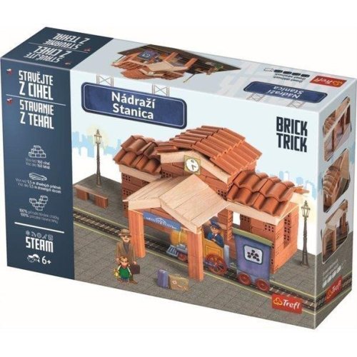 Staňte sa staviteľom a vybudujte zo skutočných hlinených tehál a dreva svoju vlastnú vlakovú stanicu! Skladajte tehlu za tehlou, režte a lepte dosky, postupujte od základov až po dokončenú budovu a nakoniec svoj výtvor ozdobte priloženými dekoráciami. Stavajte krok za krokom podľa návodu alebo nájdite a zrealizujte svoje vlastné riešenie. Oživte svoju dokončenú stavbu papierovými figúrkami. Pokiaľ spojíte niekoľko sád TREFL Brick Trick, môžete vytvoriť malebnú dedinku, moderné mesto alebo stredovekú osadu. Stavebnicu je možné používať opakovane (lepidlo je rozpustiteľné vodou). Úroveň obtiažnosti: 4,5 Balenie obsahuje: - viac ako 160 prírodných hlinených tehličiek - viac ako 5,5 m drevených dosiek - základovú dosku - obrázkový návod - papierové figúrky - dekoračné doplnky - lepidlo Stavebnice Brick Trick od výrobcu TREFL zlepšujú manuálne zručnosti, rozvíja predstavivosť a podporujú sústredenie. Vhodné pre deti od 6 rokov. Vyrobené v EÚ.