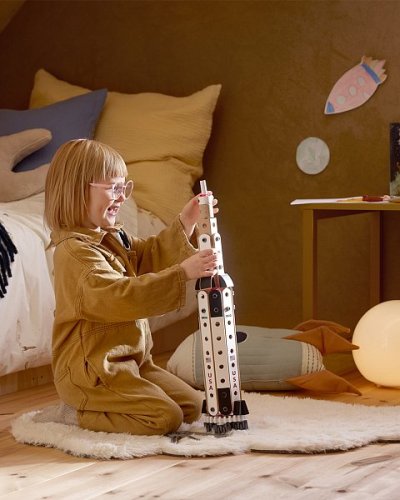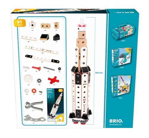 Zostavte si vesmírny projekt so stavebnicou BRIO Builder Apollo Saturn V. Raketa inšpirovaná NASA má výšku 60 cm, skladá sa z 91 dielikov a malým inžinierom priblíži výskum vesmíru. Raketa má 3 stupne – 1. nesie hlavné motory, 2. je uprostred a 3. má blikajúcu špičku. Prestavte ju na raketoplán či lietadlo alebo diely využite na neobmedzené kreatívne hry. Rovnako ako všetky stavebnice BRIO Builder aj táto hračka podporuje otvorenú a nápaditú hru – ideálna pre malých inžinierov a prieskumníkov vesmíru. Builder Apollo Saturn V obsahuje 91 dielov: 12 x drevený profil, 11x drevený blok, 9 x ozubené koleso, 5 x klinec, 1x svetlo, 1x kliešte, 1x kľúč, rôzne herné diely a 1× inspiračný letáčik. Batérie: 2 x LR44 (batérie sú súčasťou balenia). Rozmery balenia: 30 x 31 x 7 cm. Vek: 3+