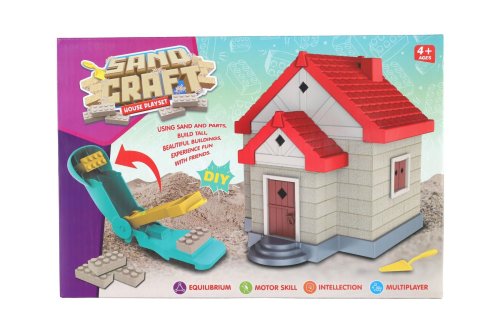 Postav si vlastný domček z piesku! Táto kreatívna stavebnica obsahuje všetko potrebné – stavebné diely, modelovací piesok aj nástroje ako formičku, pinzetu alebo stierku. Deti sa vďaka nej môžu hrať na malého staviteľa a pritom rozvíjať jemnú motoriku, logiku aj trpezlivosť. Rozmer balenia: 28 × 19 × 8 cm Vhodné pre deti od 4 rokov