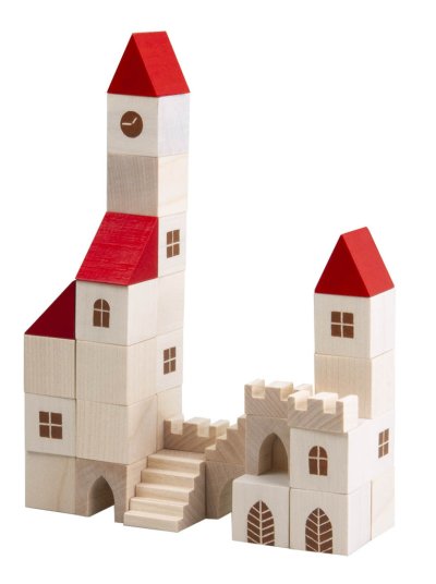 Stavebnica obsahuje 96 drevených dielikov s potlačou v rôznych tvaroch a veľkostiach. Základná veľkosť kocky je 25 mm.