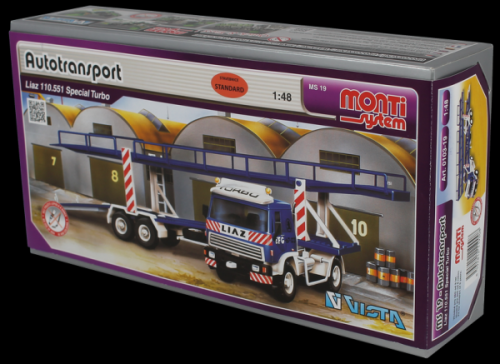 Model Liaz MS 19 Autotransport v mierke 1:48 s návesom na prevoz áut. Stavebnica patrí do radu modelov Standard.