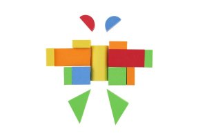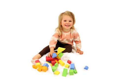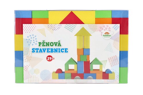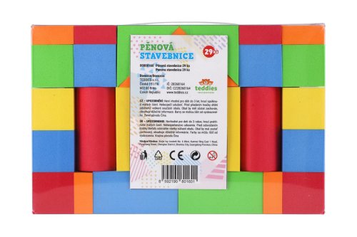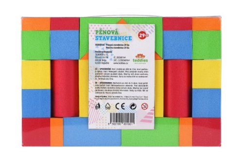 Kocky sú vyrobené z mäkkého, gumového a netoxického materiálu. Pomocou kociek sa u detí rozvíja jemná motorika rúk a vďaka farebnému prevedeniu kociek aj zrak. Kocky sú balené v plastovej taške. Súprava obsahuje 29 ks. Rozmery balenia 24,5 x 16 x 4 cm. Vhodné pre deti od 3 rokov.