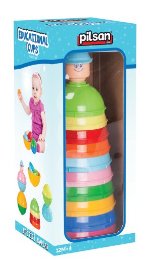 Skladacia pyramída z 10 farebných kalíškov. Výška výrobku 28 cm. Pomáha dieťaťu v rozvoji motoriky.