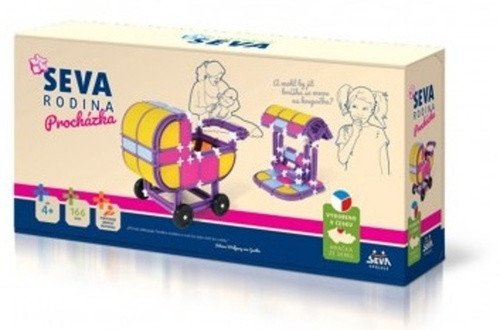 Stavebnica SEVA RODINA - Prechádzka obsahuje 166 dielikov. Postavte si kočík, hojdačku aj mnoho iného. Vyhovuje európskej norme EN71 o bezpečnosti hračiek a jej kvalita je pravidelne kontrolovaná. Všetky stavebnice SEVA sú navzájom kompatibilné a ich možnosti sa dajú stále rozširovať. Stavebnica je kreatívna, deťom rozvíja myseľ aj manuálnu zručnosť a podporuje jemnú motoriku. Rozmery balenia 32 x 17 x 8 cm. Vhodné pre deti od 4 rokov.