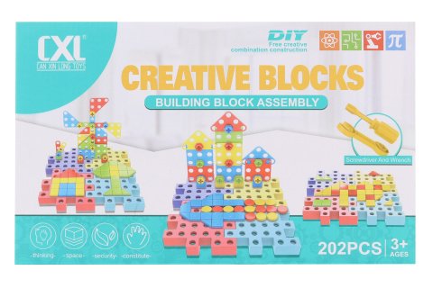 Plastová skrutkovacia stavebnica pre všetky deti, ktoré bavia montovanie. Balenie obsahuje 202 kusov dielikov, z ktorých môžete tvoriť diela podľa vašej fantázie. Postavte si mesto alebo dopravné prostriedky, fantázii sa medze nekladú. Rozmer balenia cca 28 x 17,5 x 8 cm. Vek 3+
