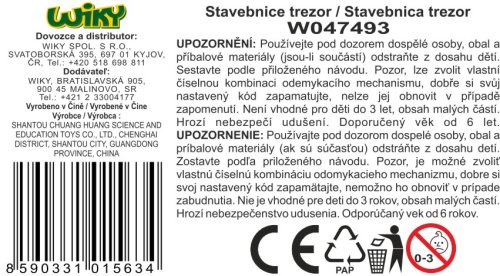 Stavebnica trezor. Rozmery 13x8x8 cm.