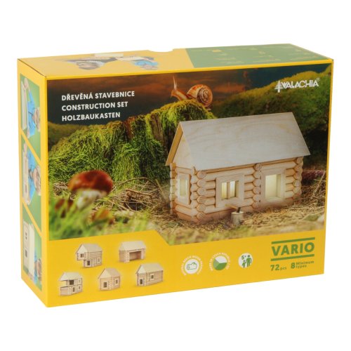 Stavebnica z masívneho bukového dreva (priemer 15 mm). Možno ju skladať aj rozkladať. Z tejto stavebnice postavíte mnoho variant stavieb. Počet dielov 72. Vhodné pre deti od 5 rokov.