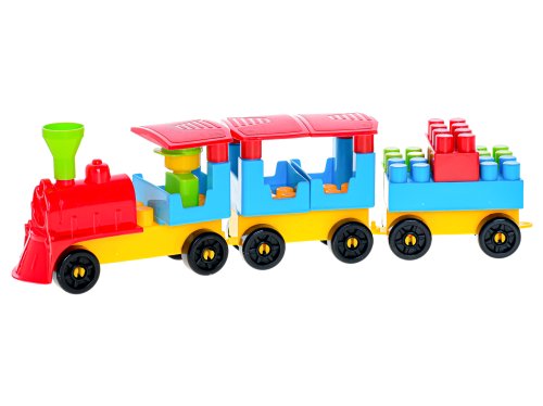 Stavebnica vláčik s dvoma vagónmi a nálepkami