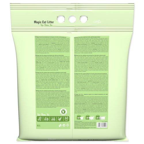 Je úplne bez chemických prísad , netoxické as úžasnou schopnosťou absorpcie vlhkosti . Hrudky môžete ľahko spláchnuť do toalety . S Magic Litter Tofu zaistíte svojej mačke čisté a zdravé prostredie, v ktorom sa bude cítiť skvele. Jedno balenie vydrží pri používaní jednou mačkou až 30 dní .