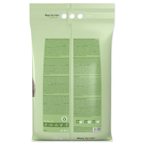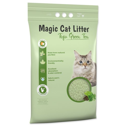 Je úplne bez chemických prísad , netoxické as úžasnou schopnosťou absorpcie vlhkosti . Hrudky môžete ľahko spláchnuť do toalety . S Magic Litter Tofu zaistíte svojej mačke čisté a zdravé prostredie, v ktorom sa bude cítiť skvele. Jedno balenie vydrží pri používaní jednou mačkou až 30 dní .
