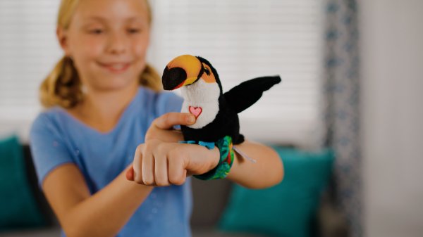 Vtáčika si môžeš pripnúť na ruku a užiť si s ním veľa zábavy.