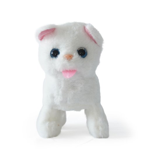 Mačička na batérie, ktorá chodí, mňauká a hýbe chvostíkom.