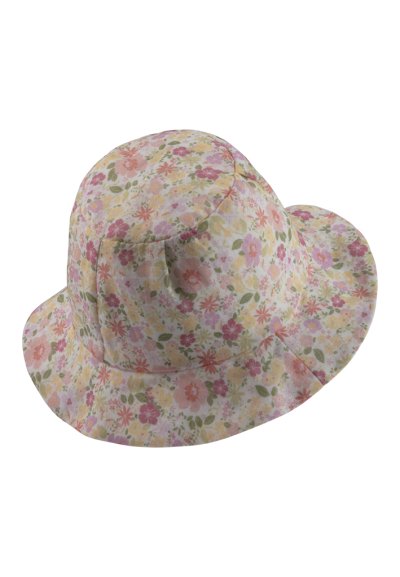 Ľahká bavlnená tkanina sa vyznačuje jemnou štruktúrou plátna. Jemné kvetinky sú v dievčenskej móde vždy trendy a samozrejme sa perfektne kombinujú s farebným a vzorovaným detským oblečením. Mierne zvlnený okraj klobúčika chráni oči pred oslňujúcim slnečným žiarením. Mierne zvlnený okraj rovnomerne zakrýva uši a krk, pričom chráni aj oči pred príliš ostrým slnečným svetlom.