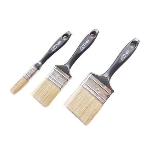 set štetcov (plochý 0,75", 2", 3") zmes 75% syntetického vlákna a 25% čistej štetiny vlákno má profil písmena X, čo znamená väčšiu plochu na udržanie farby ako bežný profil písmena O plastové držadlo čiernej …