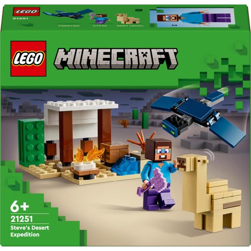 Táto stavebnica LEGO® Minecraft® pre malých staviteľov od 6 rokov je úplne prvá sada s biomom púšte zo sveta Minecraftu. Steve a výprava do púšte (21251) deti inšpiruje k postaveniu domčeka v nehostinnom prostredí, ktorý potom musí ubrániť pred lietajúcim Prízrakom.