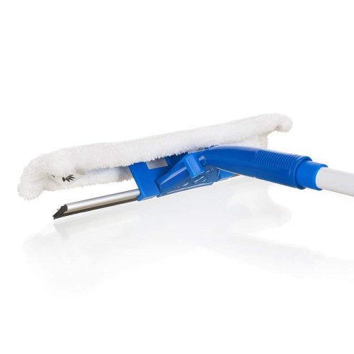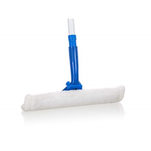 šírka stierky: 25 cm dĺžka tyče: 75 - 150 cm materiál: mikrovlákno (80 % polyester, 20 % polyamid), guma farba: modrá stierka, biele mikrovlákno