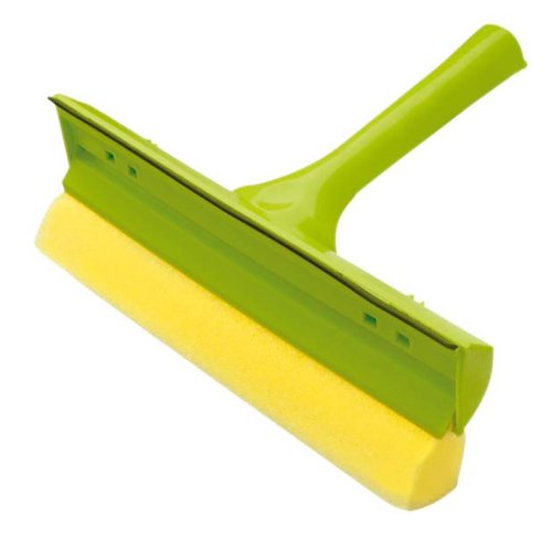Obojstranná stierka na okná - molitanová časť slúži na umytie skla a gumová časť na zotretie prebytočnej vody.