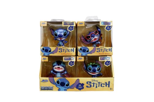 Kovové zberateľské figúrky Stitch 4 druhy - Stitch, Hula Stitch, Surfing Stitch, Ukulele Stitch. Veľkosť figúrky 6,5 cm.