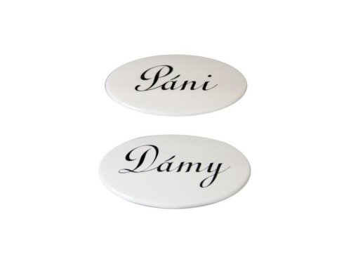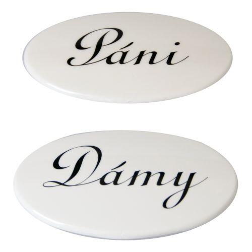 Sada dverných štítkov s popisom DÁMY + PÁNI slúži na označenie dverí bytového jadra.