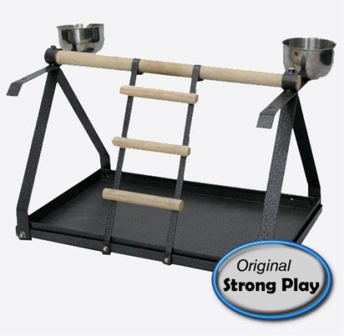 Stolný kovový stojan – ihrisko LIVIA pre väčšie papagáje je možné umiestniť do interiéru či do voliéry. Z dreveného bidielka bude papagáj určite rád pozorovať okolie. Pre ešte väčšiu zábavu je k bidielku pripevnený rebrík, po ktorom môže papagáj šplhať. V hornej časti stojana sú umiestnené dve nerezové misky na krmivo a vodu. Pevná a široká základňa zaisťuje stojanu stabilitu. Vďaka zvolenému materiálu a jednoduchému prevedeniu sa stojan veľmi ľahko udržuje v čistote. Rozmery: 49,5 x 30,5 x 33 cm (dĺžka x šírka x výška)