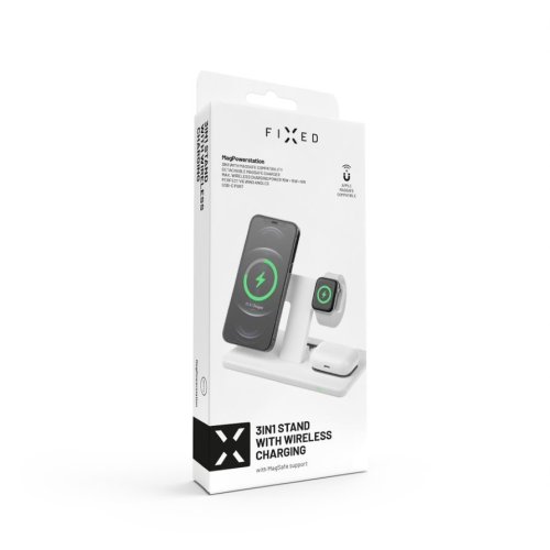 FIXED MagPowerstation je moderná bezdrôtová nabíjačka s podporou funkcie MagSafe navrhnutá priamo pre váš Apple iPhone, hodinky Apple Watch a slúchadlá Apple Airpods . Kompletne sa postará o rýchle a bezpečné dobitie všetkého dôležitého na váš bežný deň.
