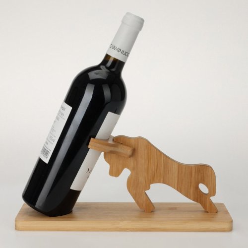 držiak na fľaše vína, s býkom, na 1 fľašu, bambus (bambusoideae), farba prírodná. celkové rozmery: 300x105x135mm, hmotnosť 395 gramov