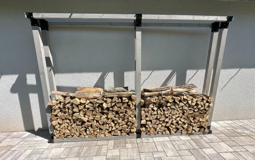 Stojan na štiepané palivové drevo je určený na dobré presychanie dreva, konštrukcia je vyrobená so práškovou povrchovou úpravou. Drevené spojnice a bočnice sú iba ilustračné, nie sú súčasťou tovaru.