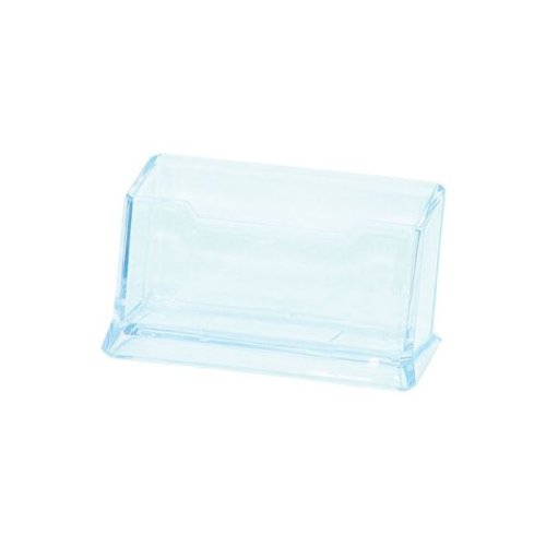 Stojan na vizitky z priehľadného akrylátu Vhodné pre vizitky do veľkosti 9,5 cm Rozmery: vnútorné - 9,5 x 2,7 cm (š xh); vonkajšie - 11,0 x 4,5, x 5,5 cm (š xvxh)