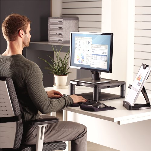 • uľahčuje organizáciu pracovného priestoru • moderný dizajn • určený pre LCD a TFT monitory s maximálnou hmotnosťou do 36 kg • tri sady vzpier umožňujú nastavenie piatich rôznych výšok stojana: 64 až 165 mm • otvory v zadnej časti uľahčujú vedenie káblov • odolná plastová základňa • zo 100% je vyrobený z recyklovaných materiálov • jednoduchá inštalácia bez nutnosti použitia nástrojov
